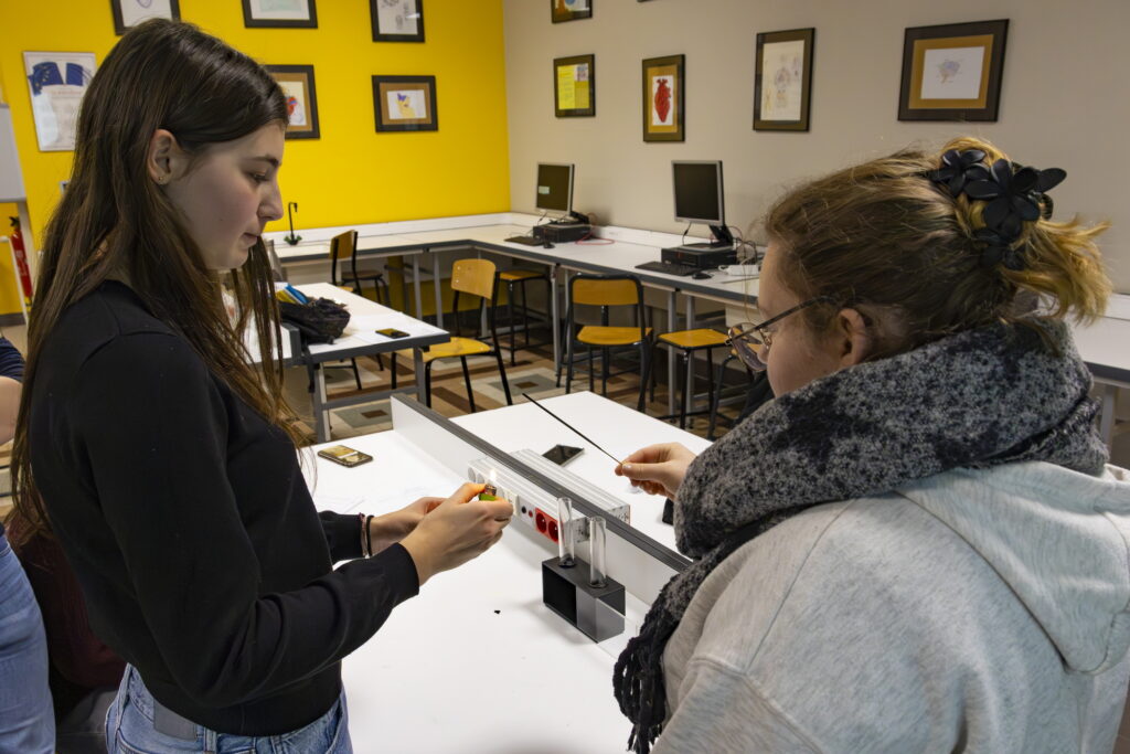La pratique scientifique s’est amorcée autour d’une réflexion sur la flottabilité des navires notamment avec l’enseignante de Physique-Chimie. Différentes expériences ont été réalisées lors des séances en classe. Il s’agissait par exemple de comprendre le principe de la poussée d’Archimède, la stabilité des navires ou les mouvements des bateaux… Tout cela a été mis en rapport avec le terrain où les élèves ont pu confronter leurs apprentissages (Disque de Plimsol par exemple).