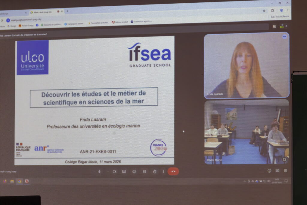Le 11 mars, les élèves ont eu l’opportunité de rencontrer en visioconférence Frida Lasram, océanographe et maître de conférences à l’Université du Littoral Côte d’Opale (ULCO).